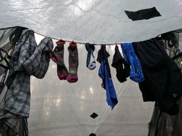 Lake laundry helps a lot but is not perfect. Real laundry in Monson will feel good, but I know the effect won’t last. As soon as I start walking, my clothes will be soaked again.