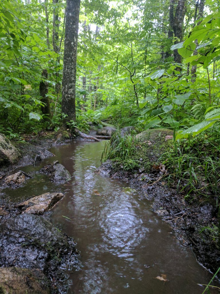At first the rain fell lightly. It started with a light pitter patter on the canopy but didn’t reach the forest floor. Then it came pouring down. It drenched my clothes and made them cling to my skin. Puddles formed on the trail and I almost stepped on a frog that was swimming in one.